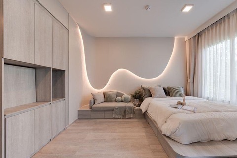 ห้องตกแต่งแล้ว กั้นห้องย่อยไว้พร้อมใช้งาน วิวมองเห็น สระว่ายน้ำ และถนนทางเข้าโครงการ